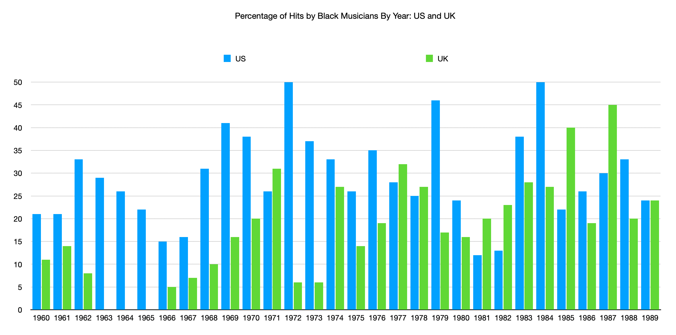 Black people seem to be directly disproportionately successful in the music industry as well, even after Jazz fell out of focus and before Hip-Hop became mainstream.